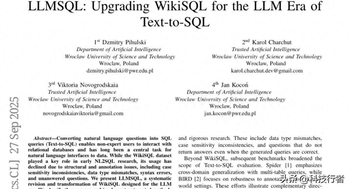 在数字化时期,普通东谈主想要从开阔的数据库中获取信息时,每每需要学会复杂的SQL查询讲话,就像要用外语与商量机对话一样勤勉。而这项由波兰弗罗茨瓦夫科技大学东谈主工智能系的Dzmitry Pihulski、Karol Charchut、Viktoria Novogrodskaia和Jan Kocoń团队完成的计议,发表于2025年9月的arXiv预印本平台(论文编号:arXiv:2510.02350v1),为贬责这个问题提供了全新的念念路。