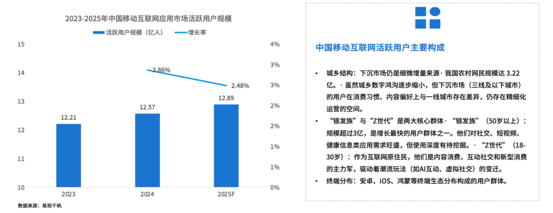 每个期间齐有我方的契机。近日,易不雅分析发布《中国应用生态阛阓发展分析》,表现炫耀,2025年中国移动应用生态阛阓活跃用户限制将达到12.89亿东谈主,是简直道理上的“全民遮掩”,2025年中国移动应用生态阛阓收入限制预测为3.49万亿元东谈主民币,将增长7.45%。精采的技艺环境、计谋的表率化鼓励着中国移动应用阛阓良性运营。