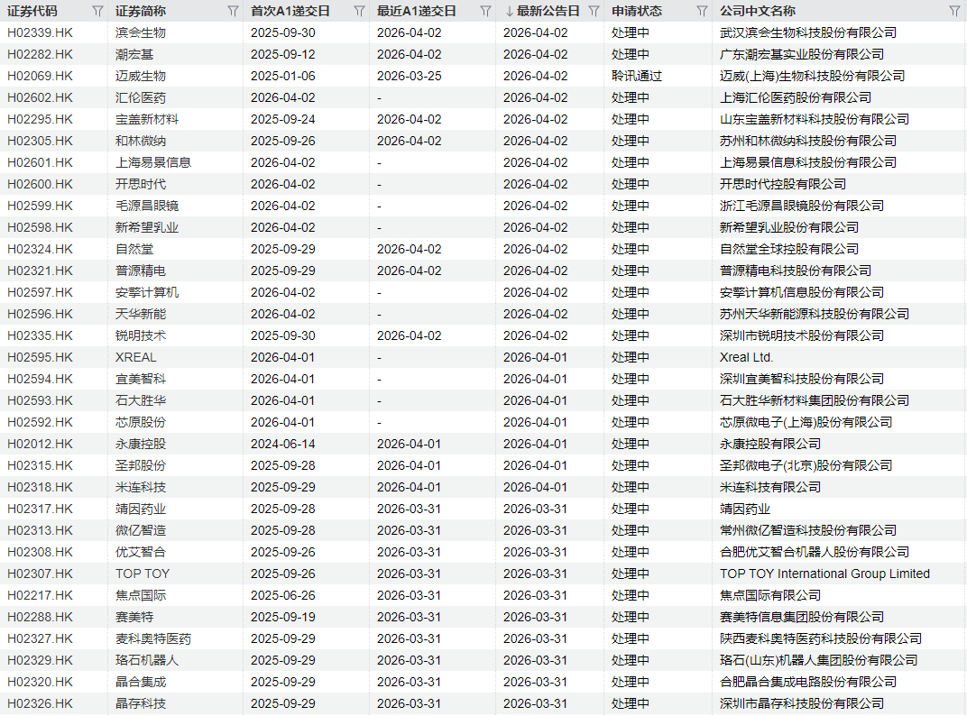 迈威(上海)生物科技股份有限公司、华勤时期股份有限公司等聆讯通过。珠海精实测控时期股份有限公司、利欧集团股份有限公司、安徽华恒生物科技股份有限公司等公司的港股肯求失效。