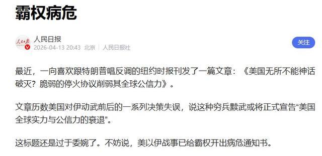 比如,好意思国的《纽约时报》就发出了这样的哀叹:这场突破标识着“好意思国无所不行传说落空”!还将其类比为1956年苏伊士危境——即,大英帝国霸权驱逐的标识性事件!