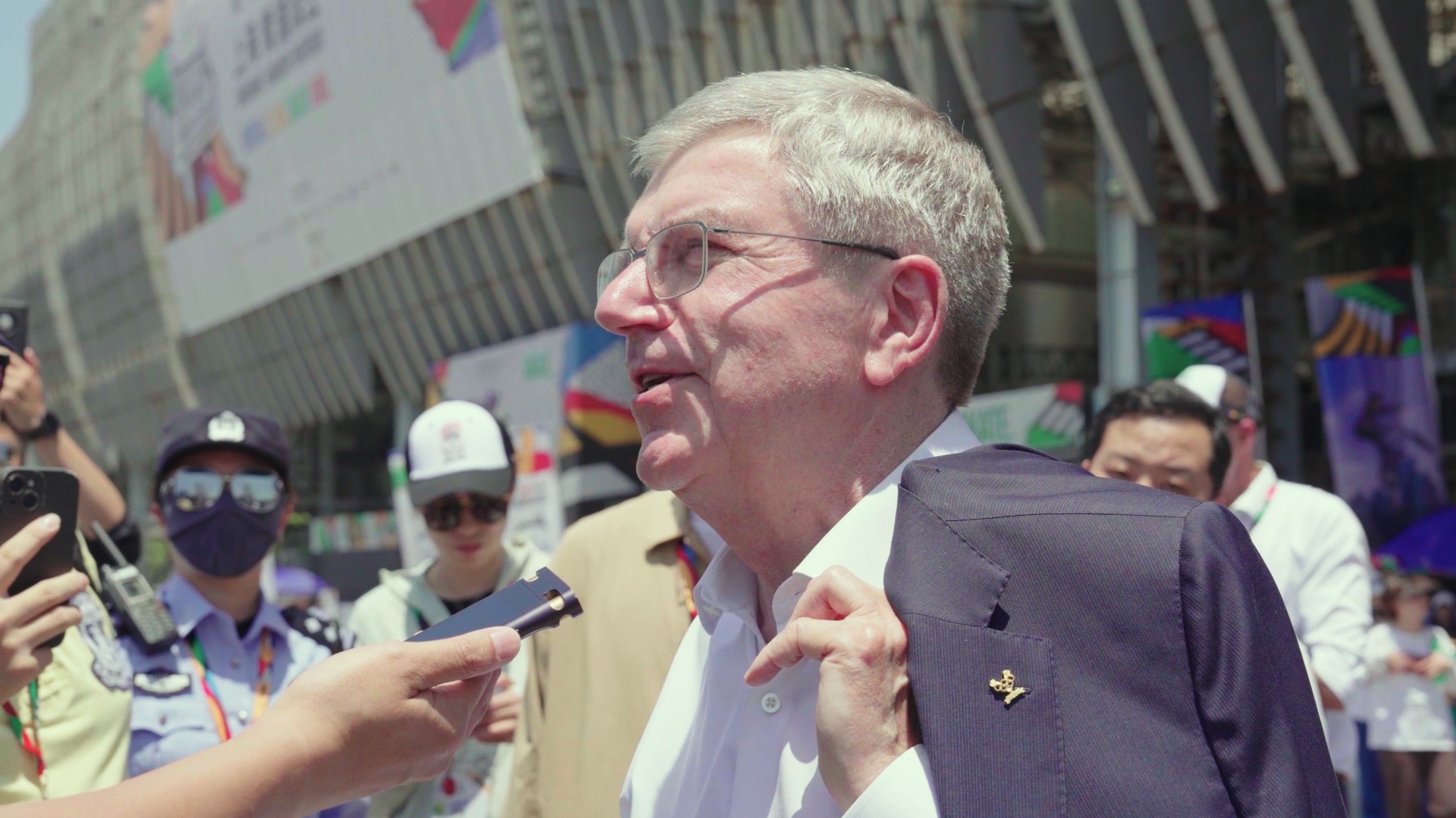 5月18日,海外奥委会主席巴赫给与采访。新华社记者 沈楠 摄
