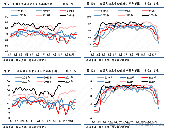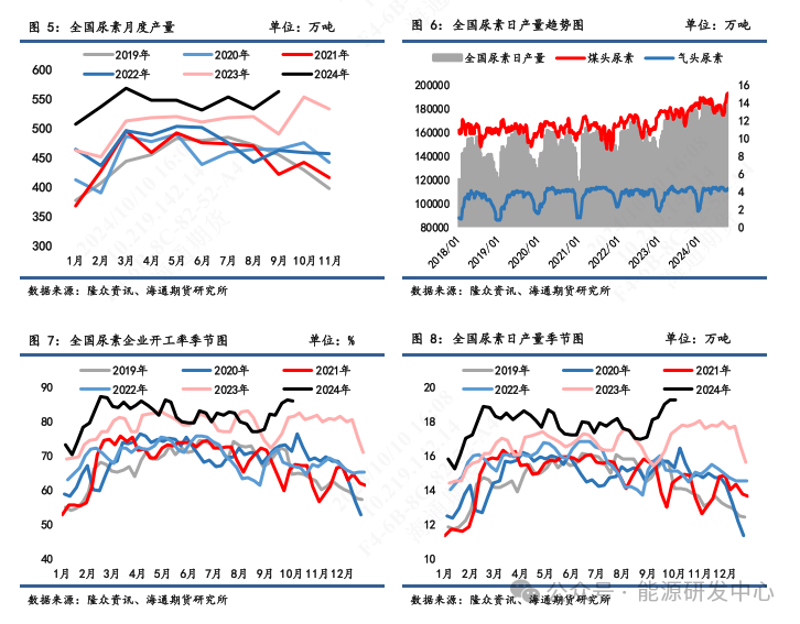 本年尿素日产量持久防守在较高水平,积年的6月份为尿素企业测验月份,进入7月份固然部分企业有复产,但由于尿素价钱初始捏续下行,企业复产积极性较差,通盘这个词7月份日产防守在17.8万吨高下,8月份跟着尿素价钱的进一步下降,尿素日产量进一步下降,8月下旬跌破17万吨。9月份以后,跟着新产能络续投产,日产量再次初始回升,斥逐9月末,世界尿素日产量达到19.25万吨的历史高位。从总产量来看,本年尿素产量远高于往年同时,数据清醒,2024年1-9月份,世界尿素总产量为4887万吨,累计同比增多385万吨,累计同比增幅8.55%,其中7-9月份产量为1651万吨,较前年三季度增多124万吨,尽管8月份日产大幅下滑,跌破17万吨,但尿素产量仍然位于历史同时较高位置。按照现在的情况来看,尿素产量虽仍有擢起飞间,但四季度华北地区环保限产情切头企业限产在一定进程上影响尿素企业的开工情况,且现在的利润情况也在一定进程上阻碍企业分娩的积极性,尤其11月中旬以后尿素产量或环比有回落,但同比或仍处于擢升景色。