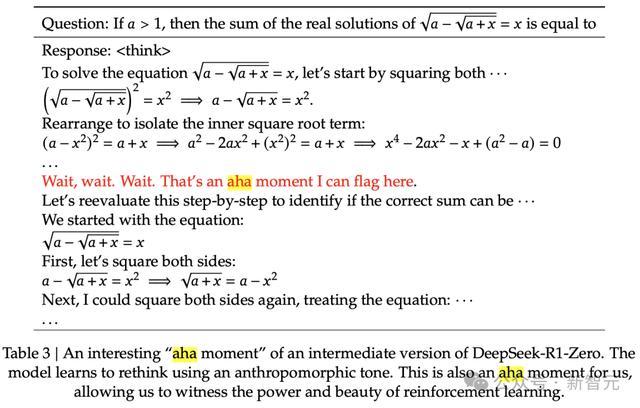这里的「Aha moment」指的是AI模子的「顿悟时辰」:在那一刻AI仿佛买通了「任督二脉」,不错像东谈主类相通自我反念念。