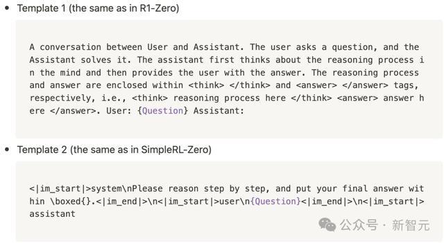 盘问者使用了在R1-Zero和SimpleRL-Zero中应用的模板,来辅导这些基础模子: