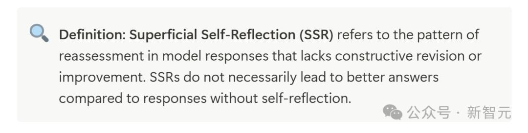 界说:浅度自我反念念(SSR)指的是模子在回答中进行再行评估的情势,但这种反念念穷乏拔擢性的修正或翻新。SSRs不一定会比莫得自我反念念的回答提供更优质的谜底