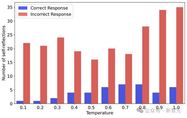 正如下图所示,在不同采样温度下,大大宗自我反念念(以频率商量)并未导致正确谜底。