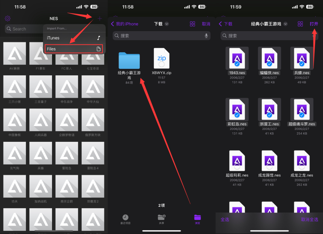 解压完成后,怒放刚刚下载的 Delta 利用,点右上角的+号,再遴荐Files,在文献中找到刚刚解压的游戏文献,就不错径直添加添加了。PS:要是找不到解压的游戏就先点左上角“我的iPhone”--“下载”里就能看到